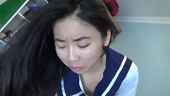 Милая азиаточка решила подшутить на сводным братом, надела сексуальный наряд студентки и стала соблазнять самца. Парень не долго думая вывалил потаскушке пенис и заставил сосать, а после нежного минета захотел грубый секс. Теперь китайская студентка попала в лапы сводного брата, который повалил крошку и жёстко отодрал, облив спермой всё лицо.