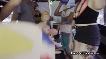 Похотливая девчушка давно хотела смачно трахнуться, поэтому сегодня крошка с друзьями выпила пивка и поехала кататься на личном автобусе сокурсника. По пути шкуру разнесло и деваха начала виснуть на хахалей, прося пениса в киску. Пьяная студентка устроила порно пати в автобусе, отдавшись мужику при подругах в пилотку, после сладкого минета.